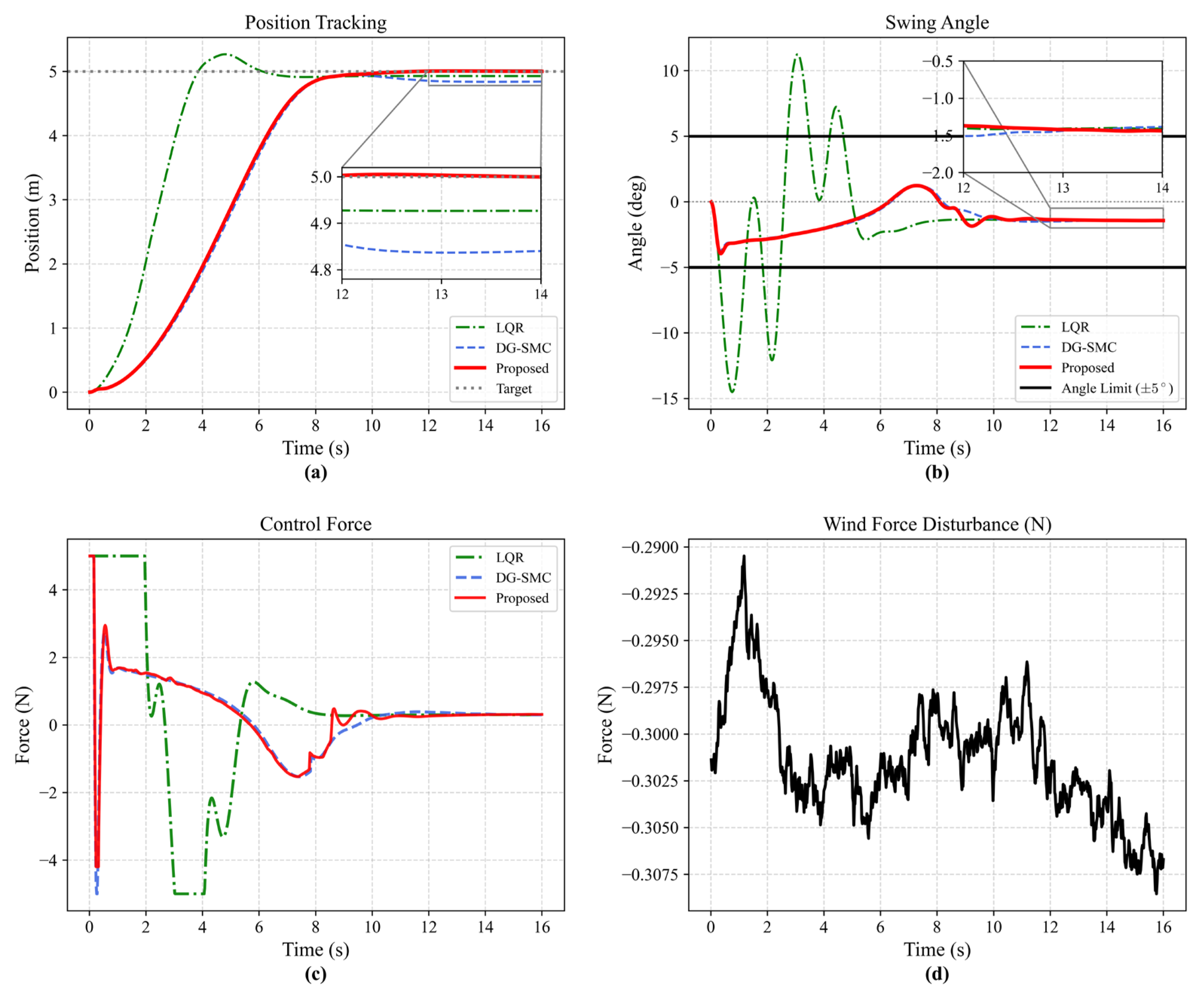 - External Disturbances: Random wind forces containing both mean components and Gaussian noise are continuously applied.