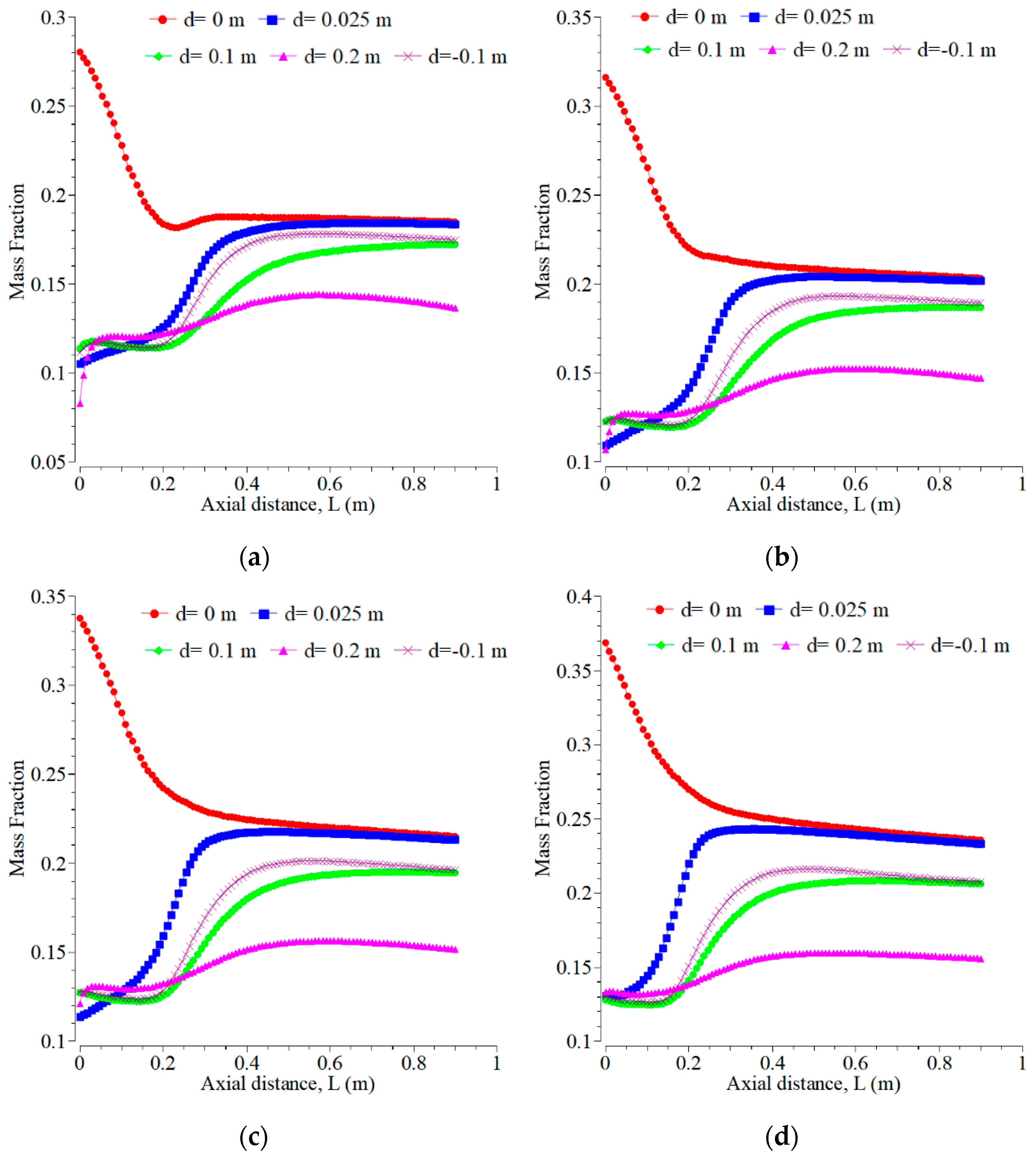 4.1. Influence of the Velocity Magnitude of Air and Fuel Inlets