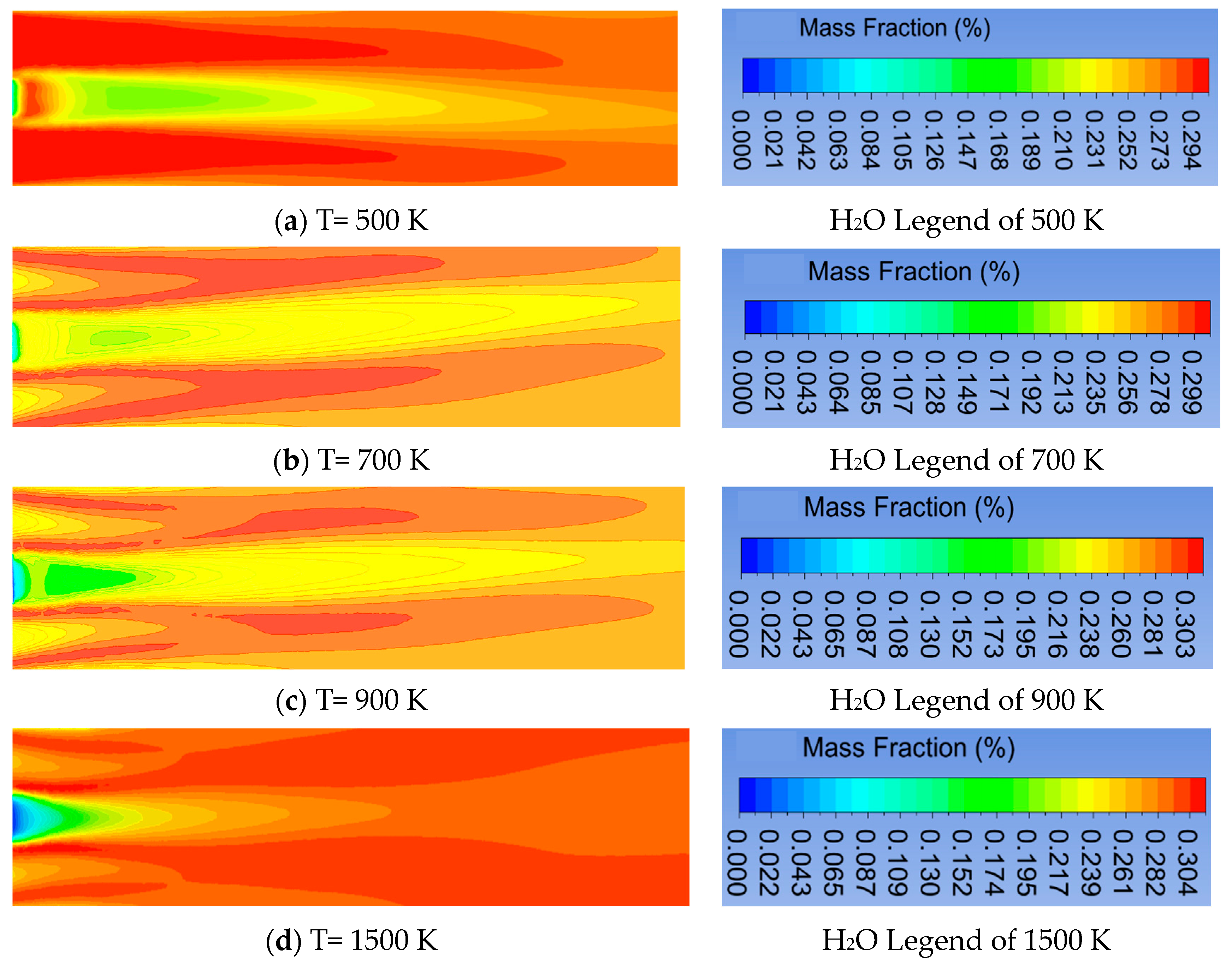 - Pashchenko, D. Comparative analysis of hydrogen/air combustion CFD-modeling for, 3.D.; 2Dcomputational domain of micro-cylindrical combustor. Int. J. Hydrogen Energy 2017, 42, 29545–29556. [Google Scholar] [CrossRef]