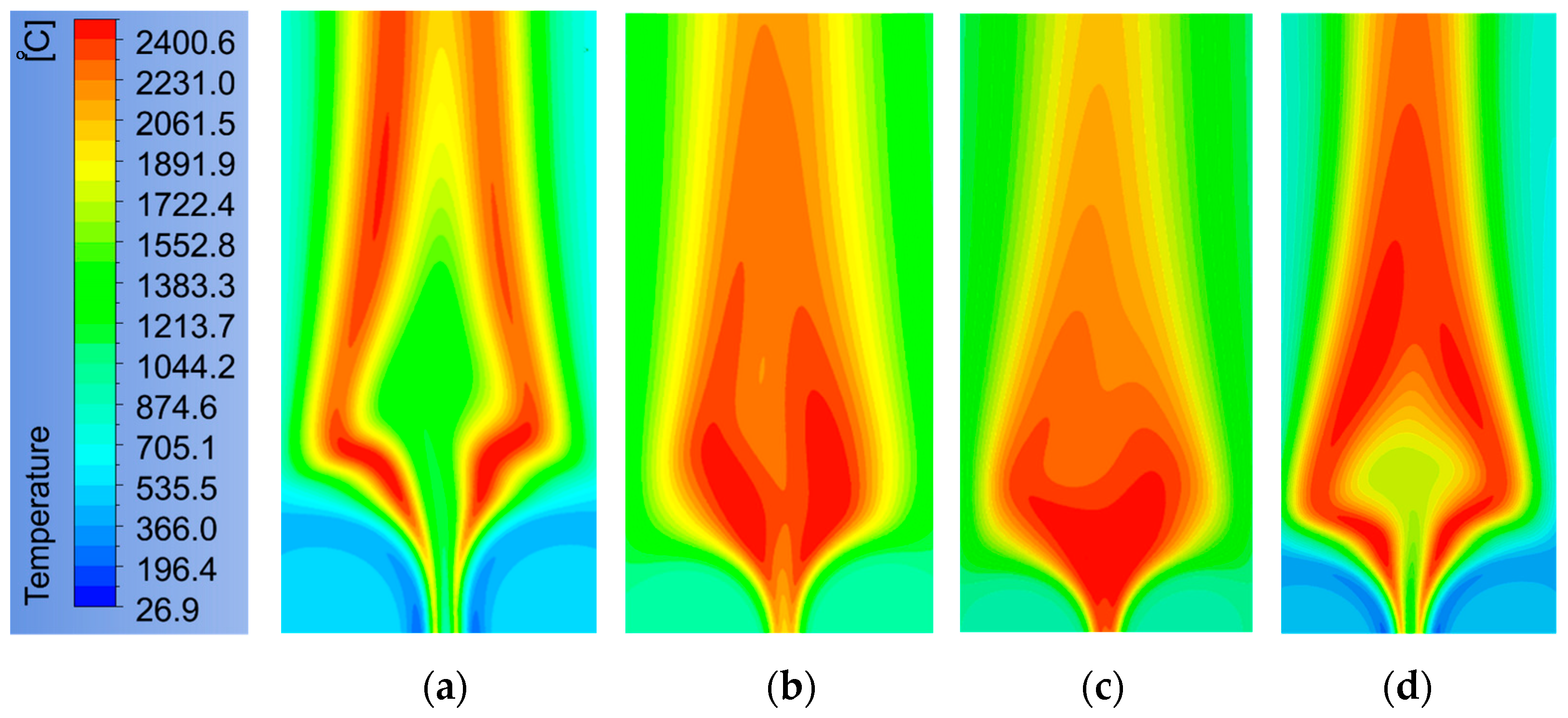- Law, W.P.; Gimbun, J. Scale-adaptive simulation on the reactive turbulent flow in a partial combustion lance: Assessment of thermal insulators. Appl. Therm. Eng. 2016, 105, 887–893. [Google Scholar] [CrossRef]