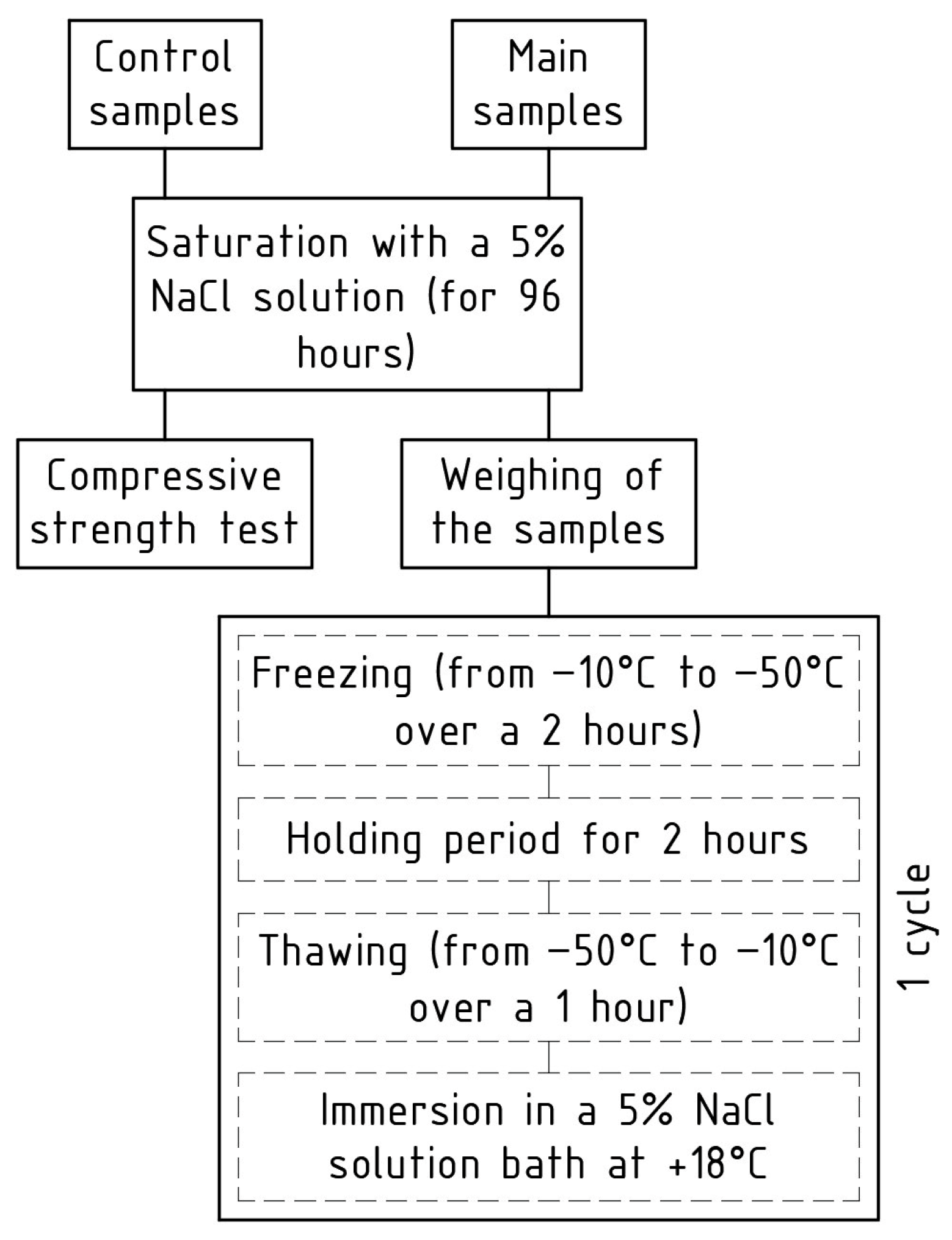 - DSTU B V.2.7-49-96; Building Materials. Concretes. Accelerated Methods of Determining Frost Resistance During Repeated Freezing and Thawing. State Scientific Research Institute of Building Structures (NIISK): Kyiv, Ukraine, 1996. Available online: http://online.budstandart.com/ua/catalog/doc-page?id_doc=4950 (accessed on 14 January 2026).