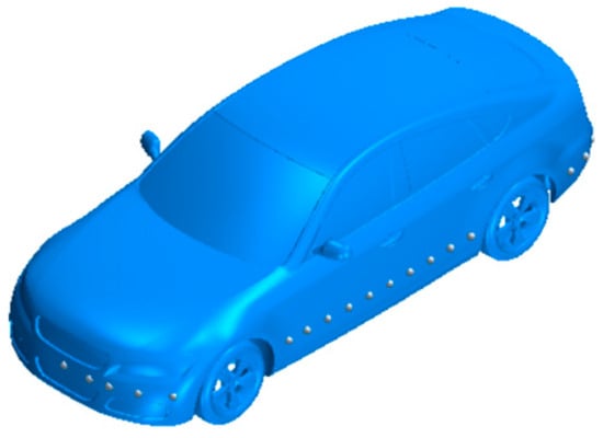 In addition, in order to obtain more aerodynamic characteristics of the model, 25 pressure monitoring points are evenly distributed in the longitudinal plane of the body of the model, the location of these specific points is set according to Ref. [20]. The locations of the monitoring points are shown in Figure 4.