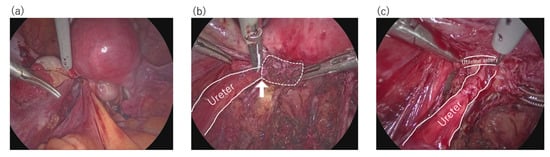Ota, Y.; Ota, K.; Takahashi, T.; Morimoto, Y.; Suzuki, S.-I.; Sano, R.; Ota, I.; Moriya, T.; Shiota, M. A Case of Elastography-Assisted Laparoscopic Fertility Preservation for Severe Deep Endometriosis Causing Ureteral Stenosis and Subtype II Adenomyosis. Endocrines 2021, 2, 348-355. https://doi.org/10.3390/endocrines2030032