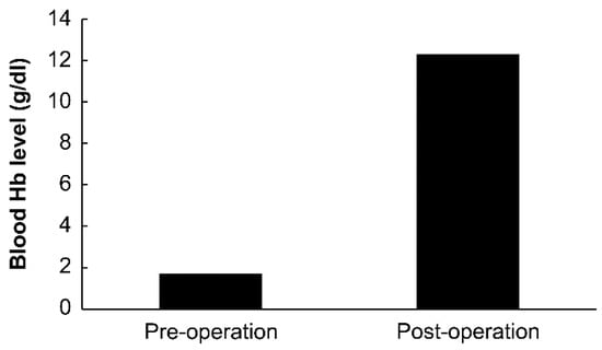 | Hemoglobin (Hb) | 2.7 g/dL | Total bilirubin (T.bil) | 0.5 mg/dL |