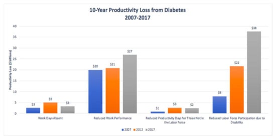 - Tunceli, K.; Zeng, H.; Habib, Z.A.; Williams, L.K. Long-term projections for diabetes-related work loss and limitations among U.S. adults. Diabetes Res. Clin. Pract. 2009, 83, e23–e25. [Google Scholar] [CrossRef]