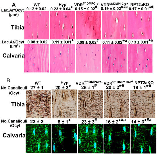 - Yuan, Y.; Jagga, S.; Martins, J.S.; Rana, R.; Pajevic, P.D.; Liu, E.S. Impaired 1,25 dihydroxyvitamin D3 action and hypophosphatemia underlie the altered lacuno-canalicular remodeling observed in the Hyp mouse model of XLH. PLoS ONE 2021, 16, e0252348. [Google Scholar] [CrossRef]
