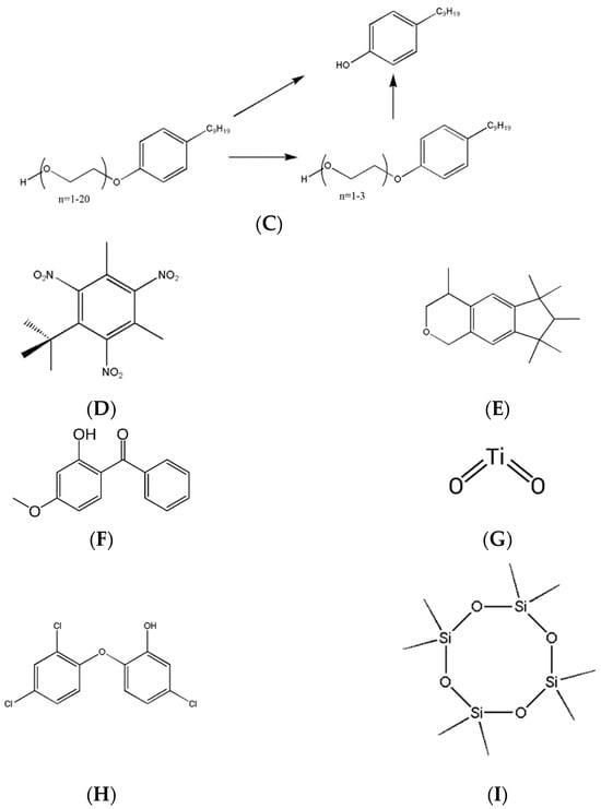 The chemical structures of endocrine-disrupting compounds in fragranced products are shown in Figure 5.