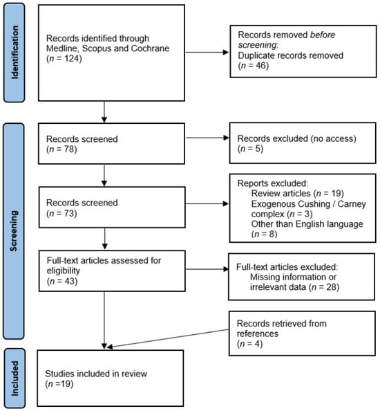 - Fleseriu, M.; Auchus, R.; Bancos, I.; Ben-Shlomo, A.; Bertherat, J.; Biermasz, N.R.; Boguszewski, C.L.; Bronstein, M.D.; Buchfelder, M.; Carmichael, J.D.; et al. Consensus on diagnosis and management of Cushing’s disease: A guideline update. Lancet Diabetes Endocrinol. 2021, 9, 847–875. [Google Scholar] [CrossRef] [PubMed]