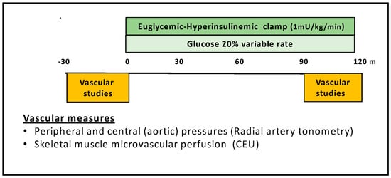 - Eggleston, E.M.; Jahn, L.A.; Barrett, E.J. Early microvascular recruitment modulates subsequent insulin-mediated skeletal muscle glucose metabolism during lipid infusion. Diabetes Care 2013, 36, 104–110. [Google Scholar] [CrossRef] [PubMed]