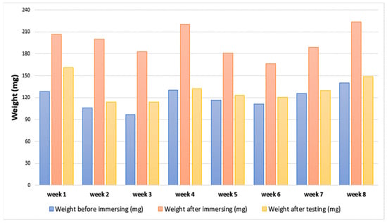 Change of the samples’ weight over the testing period.