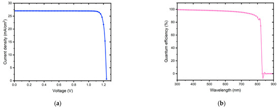 (a) J–V characteristics and (b) quantum efficiency (QE) plot of the proposed structure.