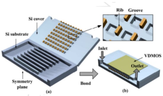 - Wang, G.; Niu, D.; Xie, F.; Wang, Y.; Zhao, X.; Ding, G. Experimental and numerical investigation of a microchannel heat sink (MCHS) with micro-scale ribs and grooves for chip cooling. Appl. Therm. Eng. 2015, 85, 61–70. [Google Scholar] [CrossRef]