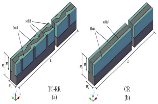 Rectangular microchannel with rectangular ribs and triangular cavities (a) Straight Microchanned (b) by Y.F. Li et al. []. Reproduced with permission from Y.F. Li et al. []; published by Elsevier, 2016.