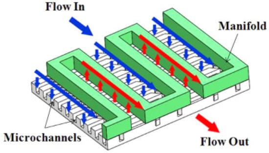 - Sharma, C.S.; Tiwari, M.K.; Michel, B.; Poulikakos, D. Thermofluidics and energetics of a manifold microchannel heat sink for electronics with recovered hot water as working fluid. Int. J. Heat Mass Transf. 2013, 58, 135–151. [Google Scholar] [CrossRef]