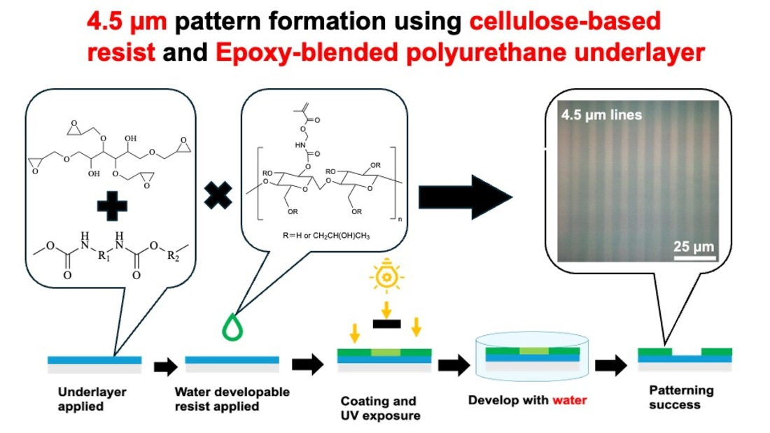 Development of Water-Developable Negative Photoresist for i-Line Photolithography Using Cellulose Derivatives with Underlayer