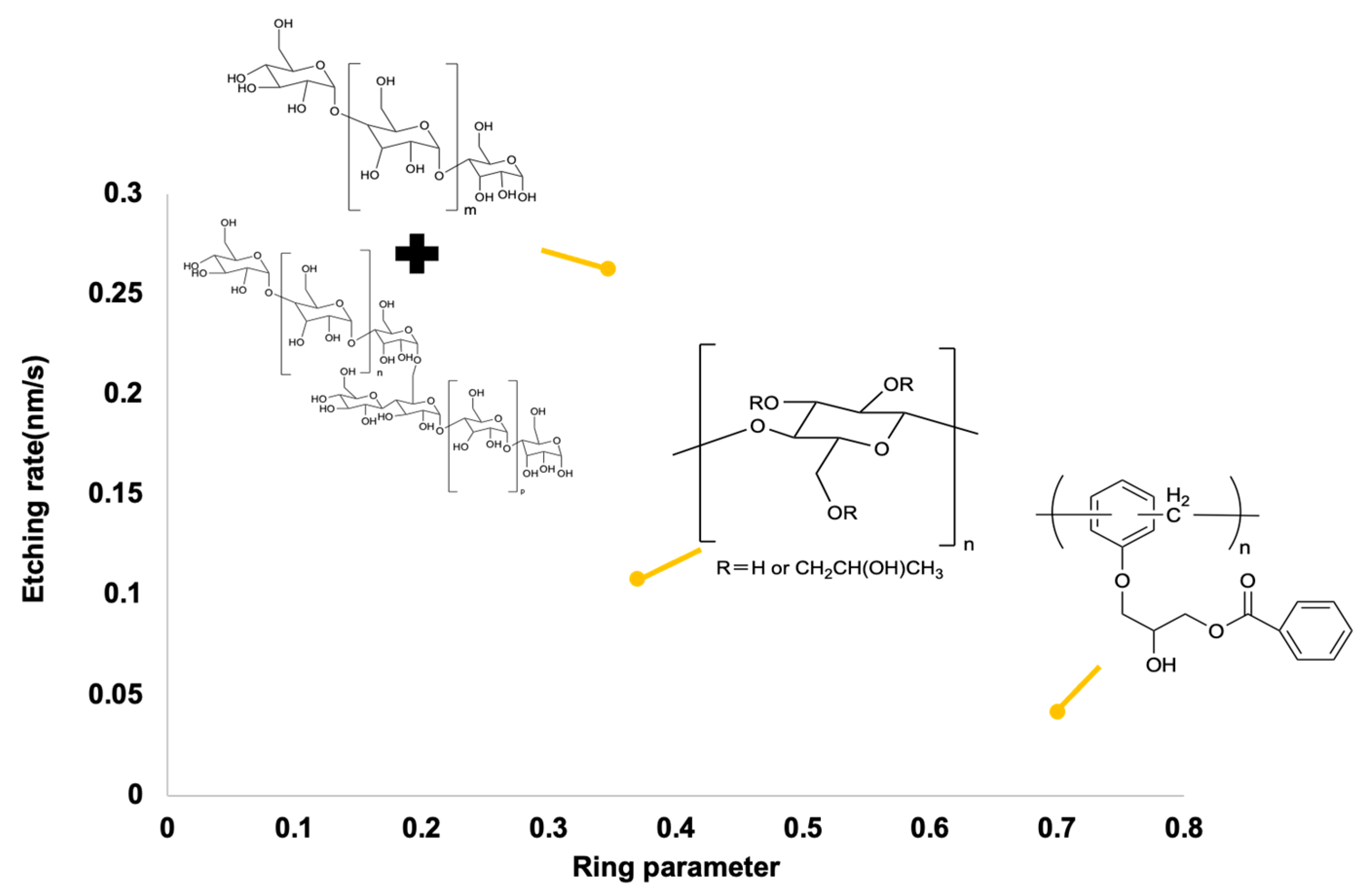 - Amano, T.; Kobayasi, M.; Takei, S. Micropatterning Performance and Physical Characteristics of Water-soluble High Molecular Weight Polysaccharide Photoresist Materials. J. Photopolym. Sci. Technol. 2021, 34, 181–186. [Google Scholar] [CrossRef]