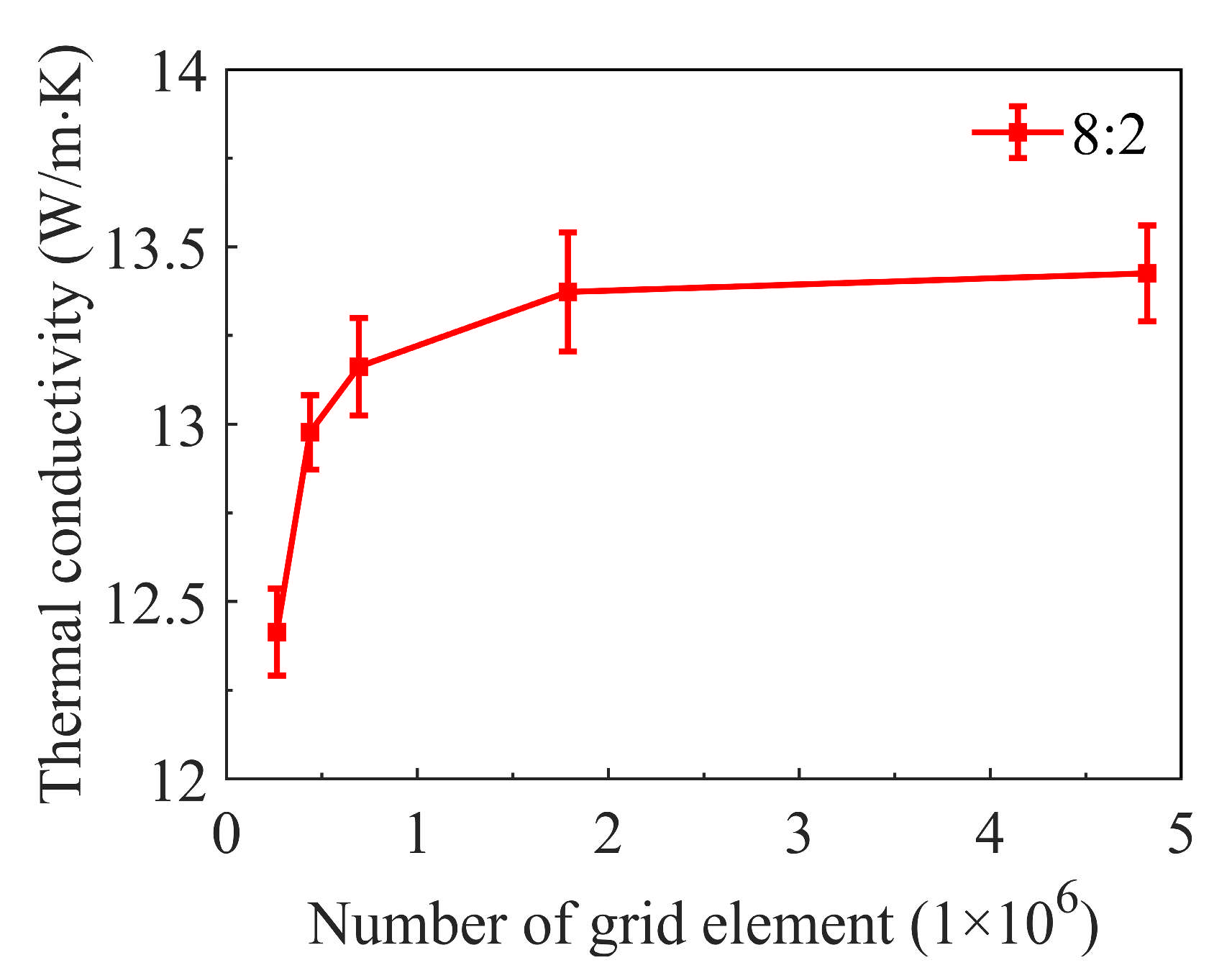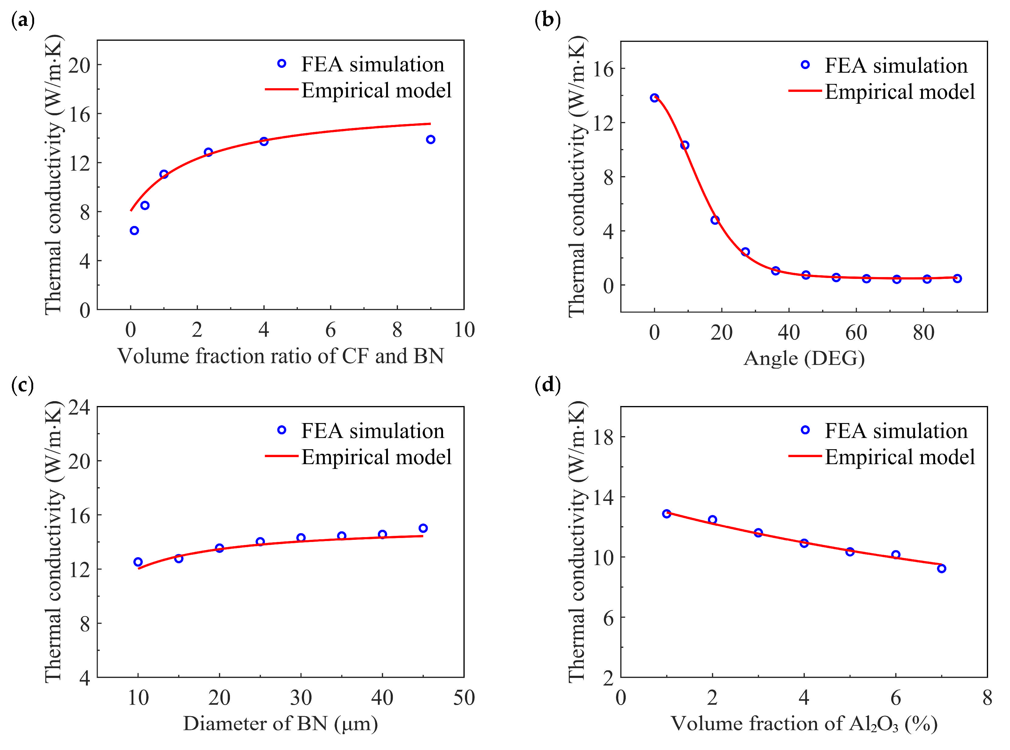 - The developed predictive model, based on thermal resistance theory, provides a computationally efficient tool for evaluating and optimizing composite thermal properties. The model’s accuracy is confirmed by its agreement with numerical results, offering practical utility for material design.