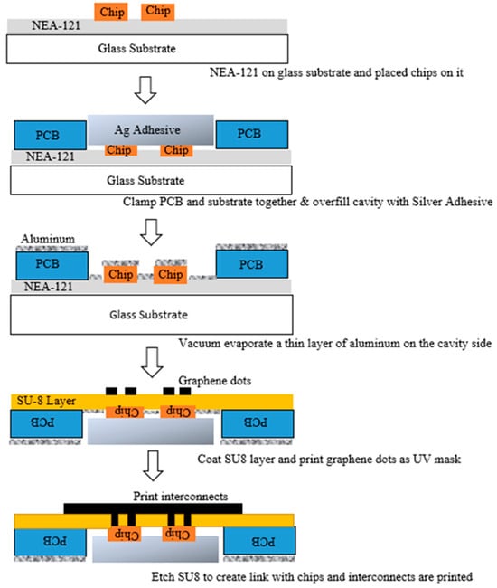 - Manessis, D.; Boettcher, L.; Ostmann, A.; Aschenbrenner, R.; Reichl, H. Innovative approaches for realisation of embedded chip packages—Technological challenges and achievements. In 2009 59th Electronic Components and Technology Conference; IEEE: New York, NY, USA, 2009; pp. 475–481. [Google Scholar] [CrossRef]