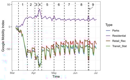 - COVID-19 Community Mobility Reports. Available online: https://www.google.com/covid19/mobility/ (accessed on 15 January 2021).