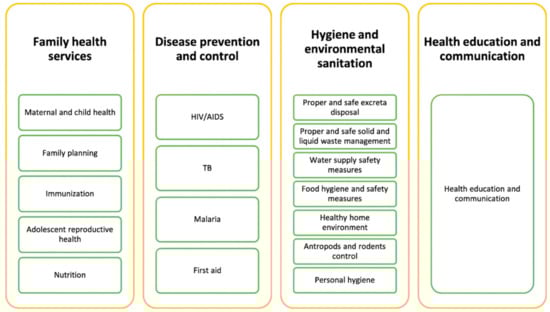 - Wang, H.; Tesfaye, R.; Ramana, G.N.V.; Chekagn, C.T. Ethiopia Health Extension Program an Institutionalized Community Approach for Universal Health Coverage; World Bank: Washington, DC, USA, 2016; Available online: https://openknowledge.worldbank.org/handle/10986/24119 (accessed on 17 March 2022).