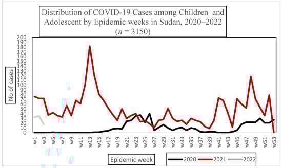 Up to March 2023 in Sudan, 63,853 COVID-19 cases and 5023 deaths were reported, with a case fatality rate of 7.9%. The elderly, health care workers, and adults were considered as high-risk groups for infection, and were the first population groups prioritized to receive the COVID-19 vaccination accordingly [21,22]. High-income countries have already prioritized children to receive the vaccination. This is a key COVID-19 control measure and helps to prevent severe outcomes. However, in the context of Sudan and other low-income countries, this decision might be hindered by the scarcity of evidence on the burden and clinical characterization of the disease among this group [23]. This study aims to describe the epidemiology of COVID-19 in children and adolescents in Sudan during 2020–2021.