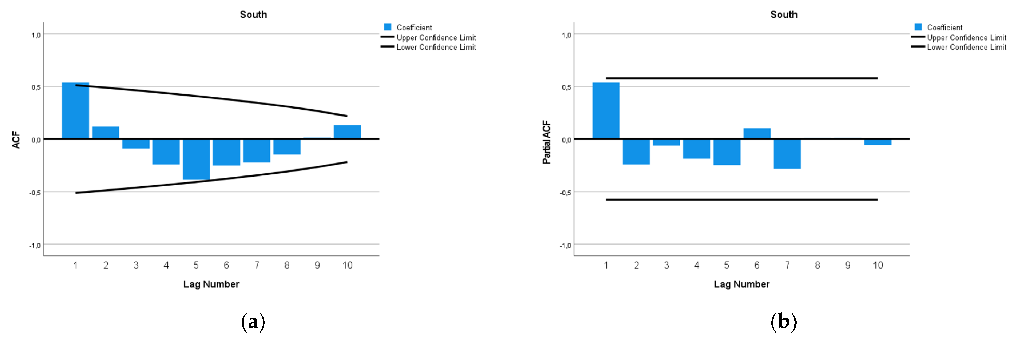 | South | ARIMA (0,1,1). | 0.525 | 6.015. |