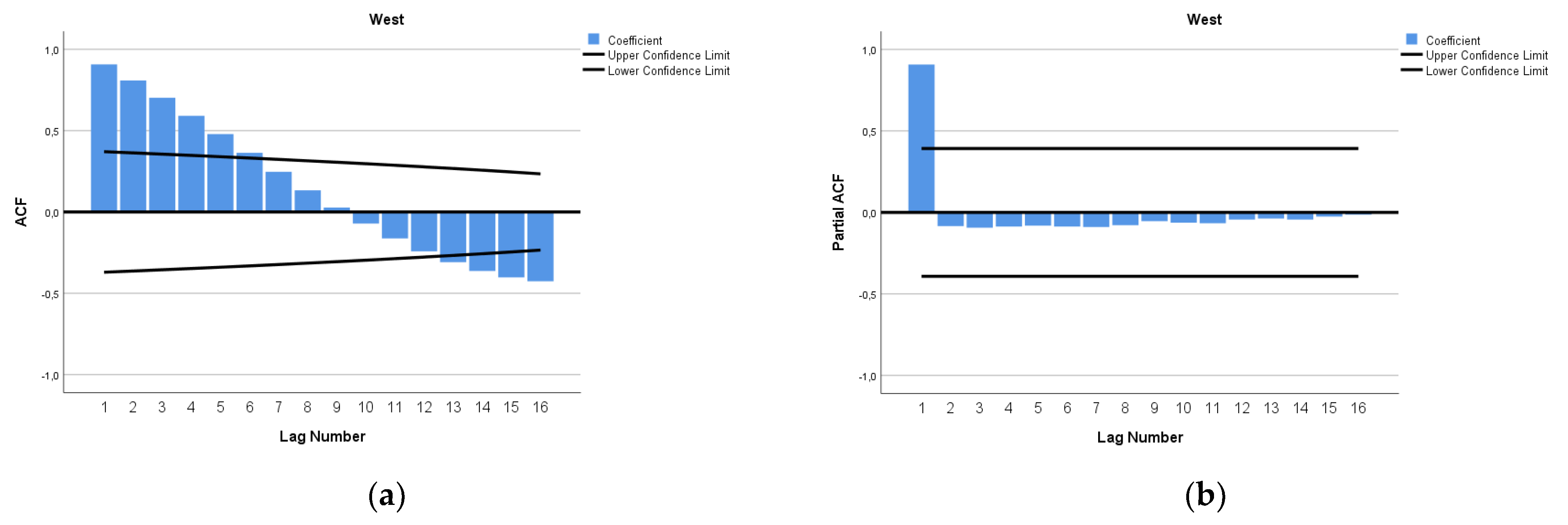 | West | ARIMA (1,2,3). | 0.226 | 2.952 |