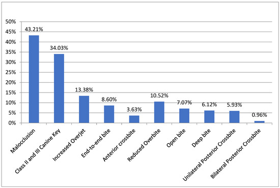 - Lombardo, G.; Vena, F.; Negri, P.; Pagano, S.; Barilotti, C.; Paglia, L.; Colombo, S.; Orso, M.; Cianetti, S. Worldwide prevalence of malocclusion in the different stages of dentition: A systematic review and meta-analysis. Eur. J. Paediatr. Dent. 2020, 21, 115–122. [Google Scholar] [CrossRef] [PubMed]
