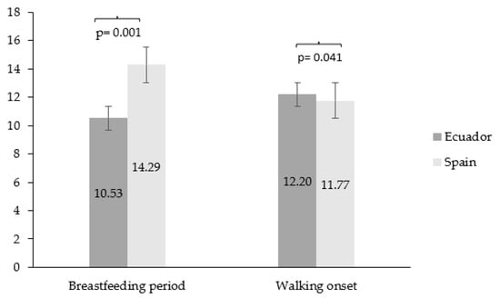 | Breastfeeding period | Ecuador | β | −0.139 | −0.131 | 0.008 | 0.135 | 0.238 | 0.310 | −0.316 | −0.409 | 0.209 | 0.246 | 0.150 | 0.008 |