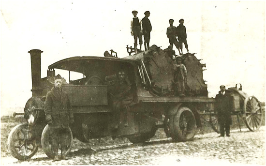 One of the 10 mobile Foden–Thresh Mobile Sterilizers sent to Poland by the APRE in 1919. The Foden lorry was steam powered and supplied steam to the Thresh disinfector [24,61].