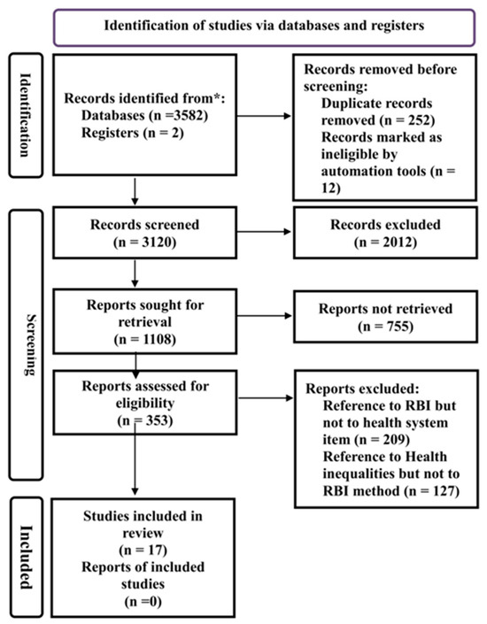 PRISMA 2020 flow diagram of study selection process inequalities [6,9,10]. * We separated studies from databases and registries to distinguish published and registered records.
