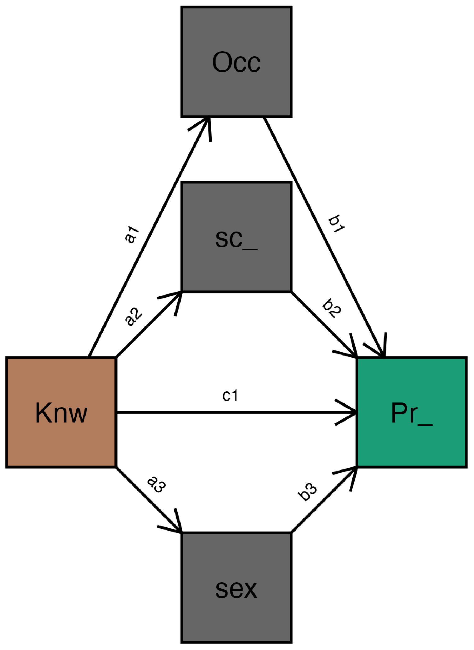Figure 1. Conceptual path plot. Note. Knw = Knowledge; Pr_ = Preventive_practices; sex = sex; Sc_ = school_level; Occ = Occupation.