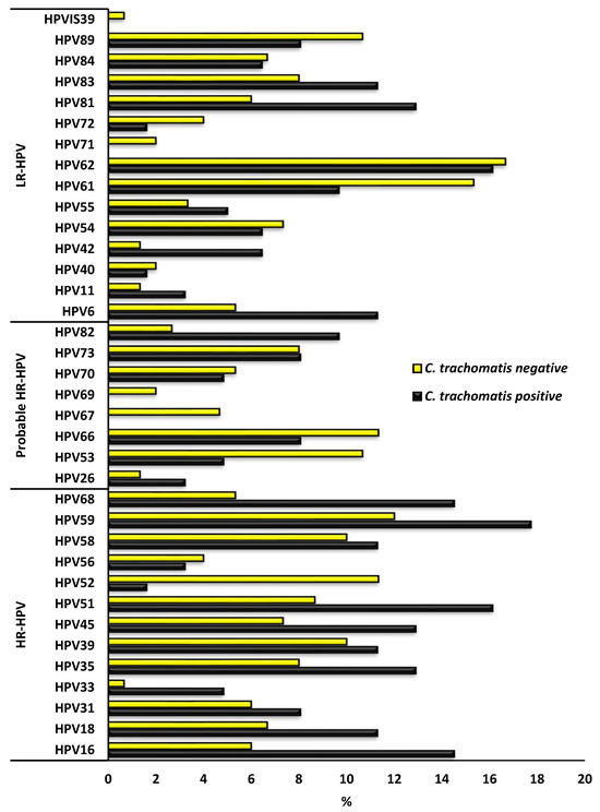 Association of Chlamydia trachomatis with the prevalence of HPV types targeted by current HPV vaccines.