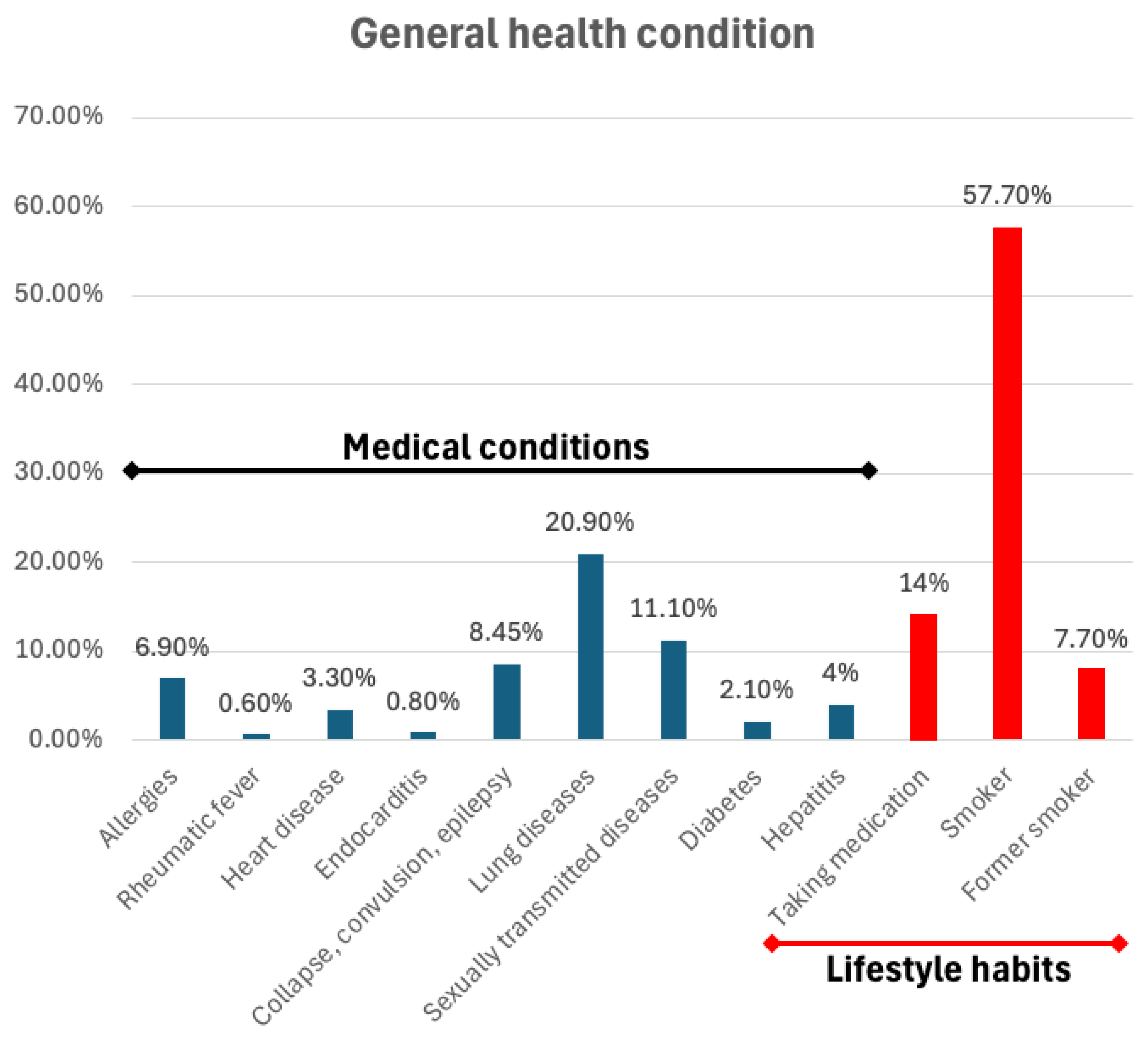 - Shah, H.; Khan, I.; Khan, S.U.; Kershan, J.; Ahmed, S.; Ayaz, S.; Usman, G. Chewable tobacco is significantly associated with dental caries and periodontitis among incarcerated women in prison. Pak. J. Med. Dent. 2023, 12, 24–29. [Google Scholar] [CrossRef]