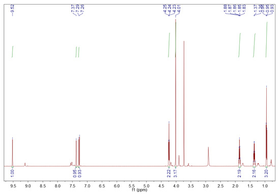 1H NMR spectrum of the fresh [BMIM][Br]. Sample of 10 mg in 0.7 mL deuterated chloroform, 600 MHz [45].