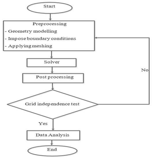 In order to accomplish a CFD analysis initially mesh must be applied to the geometry modeling that meets certain criteria in order to be successfully recognized by the analysis program. The basic parameter for ANSYS Fluent mesh is the maximum cell skewness that must be under 0.98, which is the basic concern after the mesh has been generated [10]. The simulation analysis was valued through the range of meshes from low to extra fine. The optimum mesh from the data analysis was evaluated by the mesh resolution that contained an error within a 5% limit [11,12,13]. Figure 4 indicates the grid independence tests of the overall simulation analysis models.
