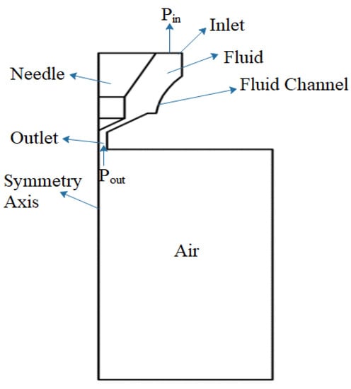In the numerical modeling of nozzle internal flow, the inlet and outflow of the nozzle were adjusted to pressure boundaries. As illustrated in Table 1 and Figure 5, the nozzle’s inlet pressure was set to fuel injection pressure, the outlet pressure was set to ambient pressure, and the nozzle’s wall surface was set to a no-slip velocity boundary.