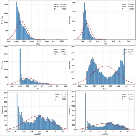The pore size distribution of the NMR logging tool has been used to calculate the rock’s matrix absolute permeability. The two most applied equations are Coates (Equation (9)) and the SDR (Schlumberger-Doll Research, Equation (10)) models [10,14,15,16].