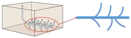 A multilateral well configuration encompasses the deployment of multiple horizontal laterals branching off from a singular vertical wellbore, with the objective of enhancing production efficiency [1]. The utilization of multilateral wells aims to increase the drainage area and thus augment the production rate [2]. Although the drilling cost associated with multilateral wells may be higher, this cost is offset by the improved reservoir recovery resulting from enhanced wellbore-reservoir contact. There has been extensive research directed towards optimizing multilateral drilling costs and designs [3,4]. One of the latest advancements in multilateral drilling technology is Fishbone Drilling (FbD) [5]. FbD is comprised of a series of micro-branches drilled in divergent directions from a primary horizontal wellbore, with a designated inter-branch spacing as shown in Figure 1 [6]. The implementation of FbD can maximize reservoir contact area and facilitate access to previously unreachable geological formations, thereby augmenting cumulative production [7]. FbD has been shown to have higher productivity compared to hydraulic fracturing in relatively low permeability formations [8]. FbD is a desirable solution in the light of economic, environmental, and regulatory limitations [9]. A recent study conducted by THREE60 Energy found that Fishbone drilling methods result in significantly lower CO2 emissions compared to other well enhancement practices [10]. The study demonstrated that the jetting solution employed in FbD resulted in an 88% reduction in emissions and the drilling method resulted in a 95% reduction in emissions compared to other market alternatives. The jetting emissions for FbD were found to be 6.7 tons per completion, in contrast to 53.3 tons for acid-fracturing [11]. Drilling emissions for FbD were 35.4 tons per completion, compared to 651 tons for propped-fracturing. The study concluded that FbD methods provide a safer, more environmentally responsible, and potentially more cost-effective solution for well enhancement, with the ability to selectively stimulate reservoir “sweet spots” and connect with faults and fractures [12,13] through expertly controlled pumping operations [11].