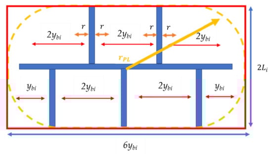 The drainage surface is a part of the stimulated radius “rpl”. The rpl of the existing correlation considers that by increasing the distance between adjacent branches, the drainage surface increases. To develop that, we take an example of a Fishbone well with five branches, as shown in Figure 6.