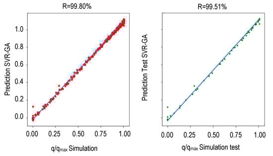 The R-score of the SVR-GA was 99.80%, as shown in Figure 10, with the root mean square error of 0.0149, and the mean absolute error of 0.0104 (see Figure 11).