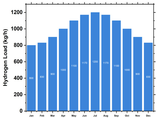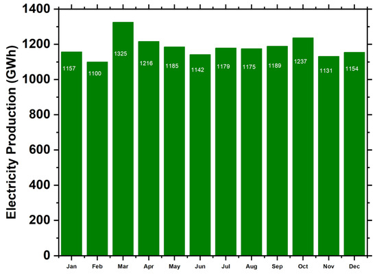 This approach ensures that our techno-economic assessment accounts for the diverse range of component costs in the market, leading to a more realistic and accurate evaluation of the optimal energy system configuration. Furthermore, by incorporating data from multiple sources, we mitigate potential biases and provide a more robust understanding of the financial implications associated with implementing different energy system configurations in a real-world context [66,67,68,69,70,71,72,73]. Table 3 displays the parameters of the solar system utilized in this investigation. A 100 kW solar system is a typical photovoltaic system that adds to the overall energy production of 1 GW. Figure 5 shows the energy demand for electricity annually.