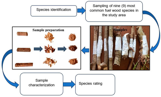 Although several studies have been carried out on wood characterization, there is no adequate explanation of how species types affect charcoal or fuelwood production, performance, and sustainability. This may be because of the greater interest shown in valorizing lignocellulosic biomass into new forms of energy rather than conventional solid fuels (fuelwood and charcoal). In this vein, studies are focusing more on the use of agricultural residues in developing biofuels, such as briquettes, pellets, biogas, etc., to reduce the pressure on fuelwood and charcoal as a means of abating deforestation. Nonetheless, the knowledge of the effect of wood species on fuel production is imperative as users of charcoal and fuelwood are increasing rapidly. Thus, the findings in this study would serve as a guide in wood selection as it reports the most efficient and those with the best potential to be pelleted to augment the rapid deterioration of forests for fuelwood and charcoal production. Similarly, analyzing the wood’s proximate parameters with and without bark is an aspect that validates the influence of wood bark during combustion. This is equally missing in previous studies. Another novelty of this study is that it assessed the conformity of selected wood species from other African countries and those of this study with international wood pellet standards. Thus, the objective of this study is to evaluate the selected physical and thermochemical properties of some wood species used in fuelwood and charcoal production in Nigeria to determine the best in terms of fuel-related properties and the best in terms of compliance with ENplus [22], DIN 51731/DINplus [23], ÖNORM M7135 [23], and ISO 17225-2 [24] standards.