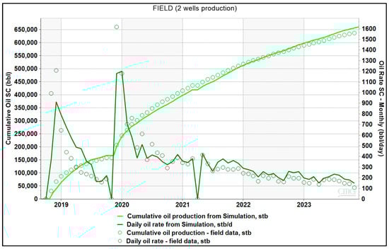 History matching oil cumulative and oil rate of entire field.