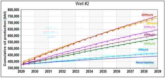 Cumulative oil production corresponding with different CO2 injection rates.