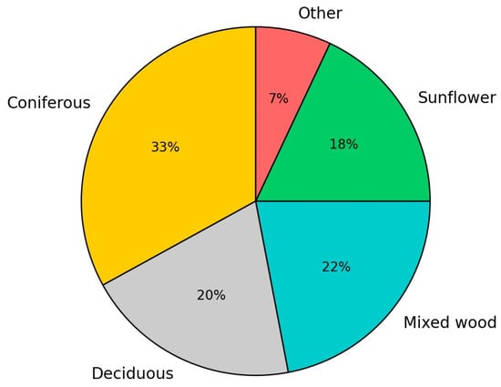 The data collected from this marketing research indicate a diverse range of preferences among respondents, with coniferous pellets and mixed wood pellets being the most popular purchase choices of solid biomass fuels, respectively, 33% and 22%, followed by deciduous pellets (20%) and sunflower pellets (18%) (see Figure 6).