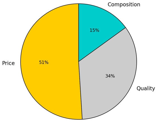 The marketing survey shows that coniferous and mixed pellets are preferred by 33% and 22% of the respondents, followed by deciduous (20%) and sunflower pellets (18%). These results are consistent with studies in [27,49], which show that consumers choose coniferous pellets for their reliability and efficiency. However, 46% of the respondents prefer the cheaper sunflower pellets, which highlights the importance of the economic factors. Only 15% of the respondents emphasize environmental aspects, suggesting the need to raise awareness of the benefits of sustainable biofuels.