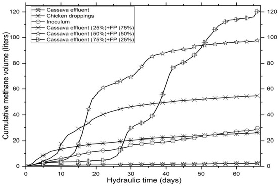 Figure 4 shows the evolution of cumulative methane production for the various reactors over time.