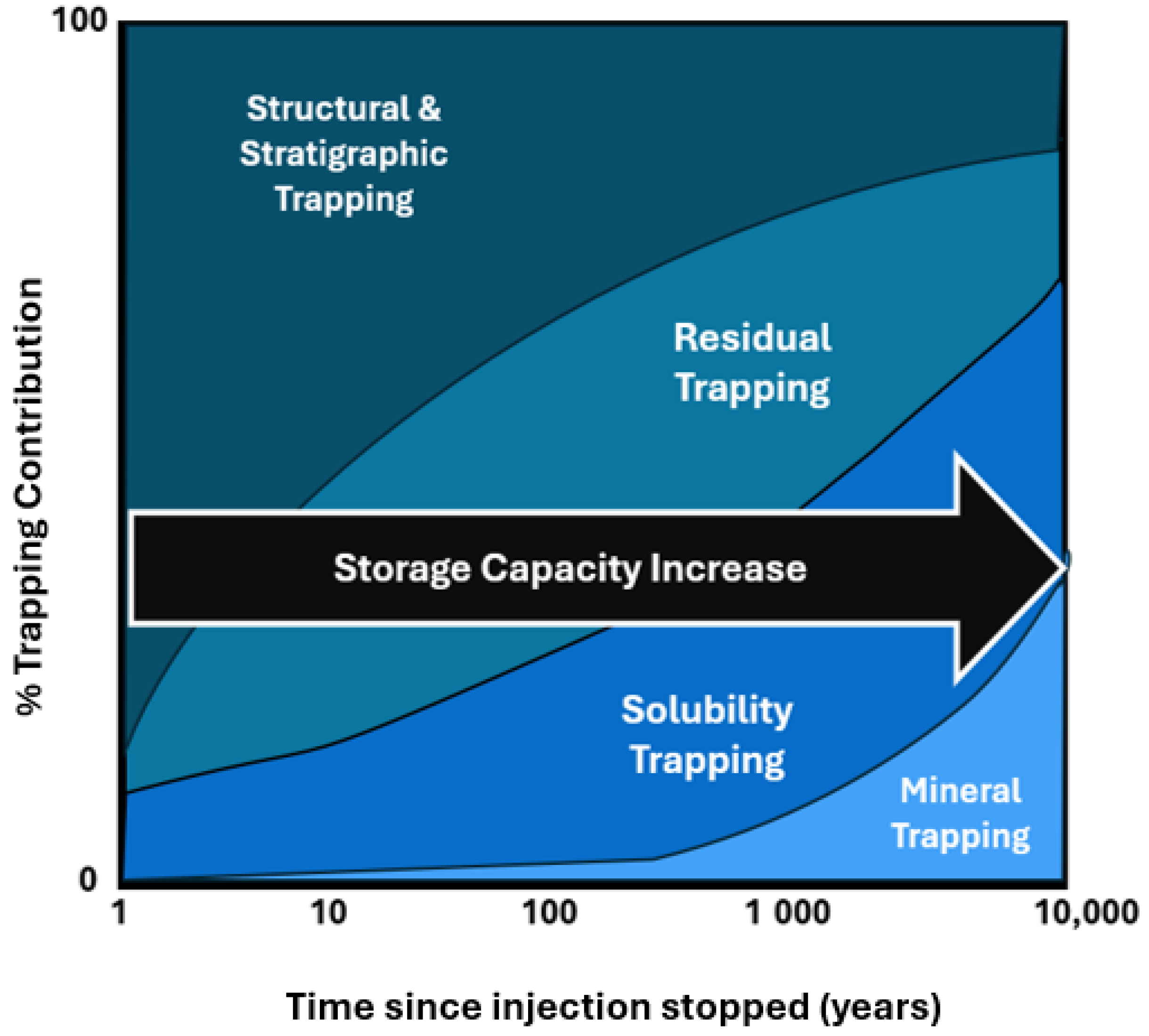 2, reservoir rocks tend to shift toward a more water-wet state, which promotes increased capillary trapping of CO