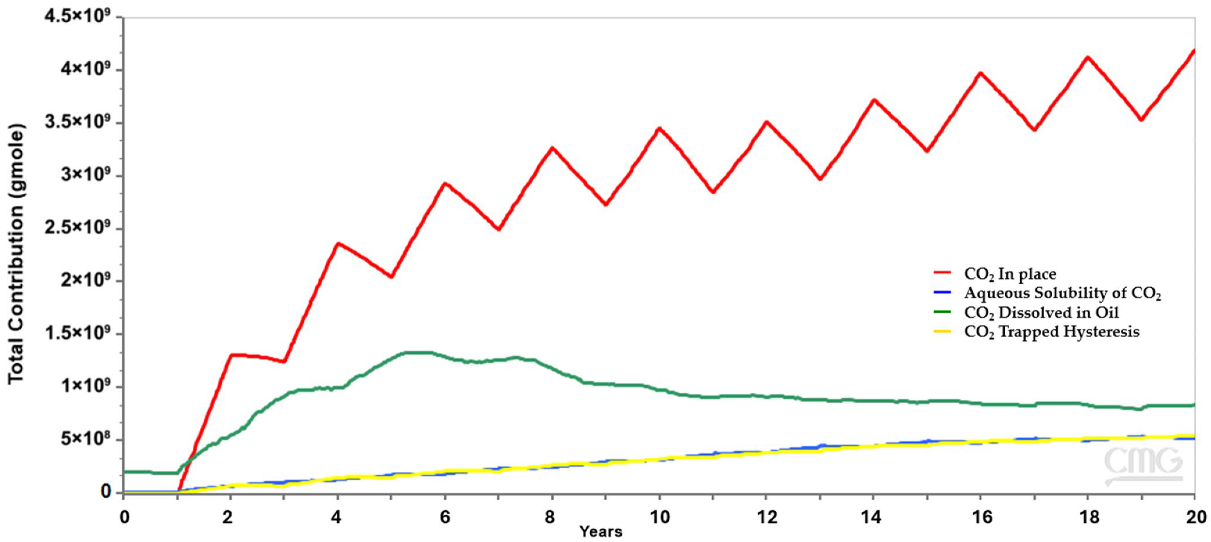 51]. The target limestone reservoir sector that was simulated in this study uses 119,000 tons of CO